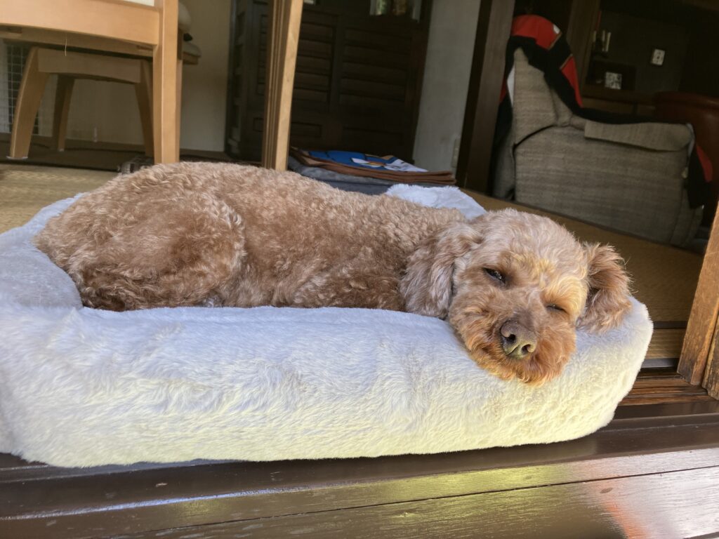 これからはずっとママの近くで、のんびりゆったりと犬生を送ってくださいね。