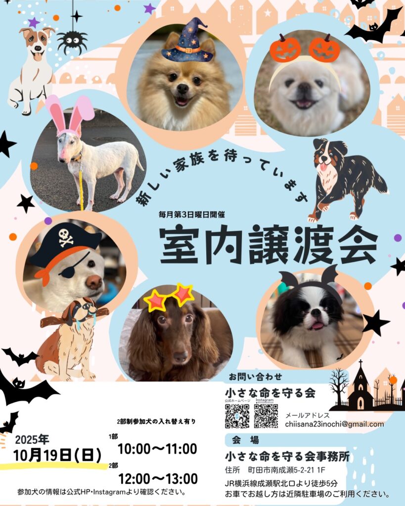 当会事務所(町田市成瀬)にて中型・大型犬対象の室内譲渡会を開催します!!