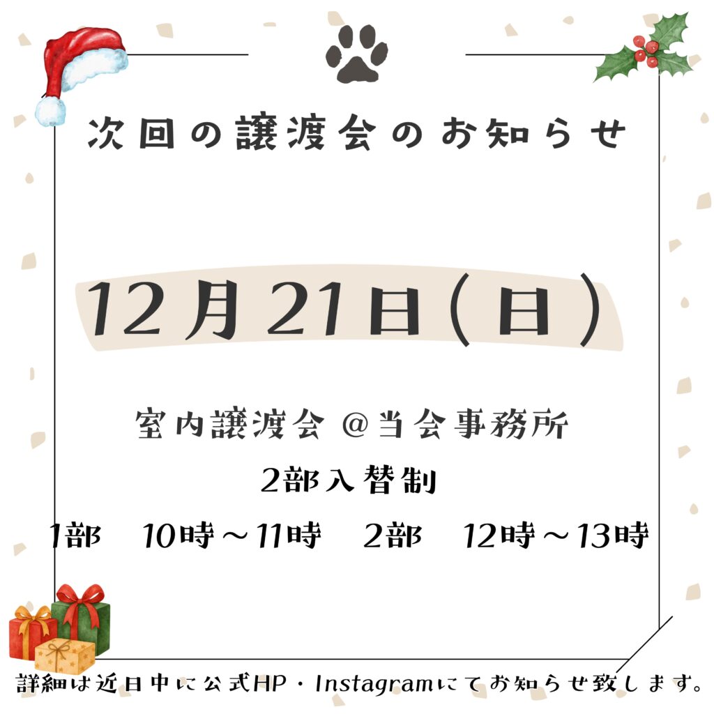 当日はあいにくの雨となりましたが、そのような中でも譲渡会にお越しいただき、本当にありがとうございました。