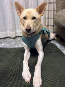 『まだまだケージが大好きですが、ケージの外にいても震えなくなってきています!
