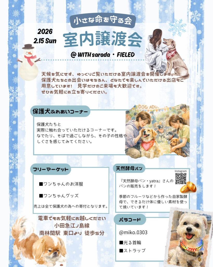 寒い季節でもゆっくり過ごせる、室内譲渡会を開催します。