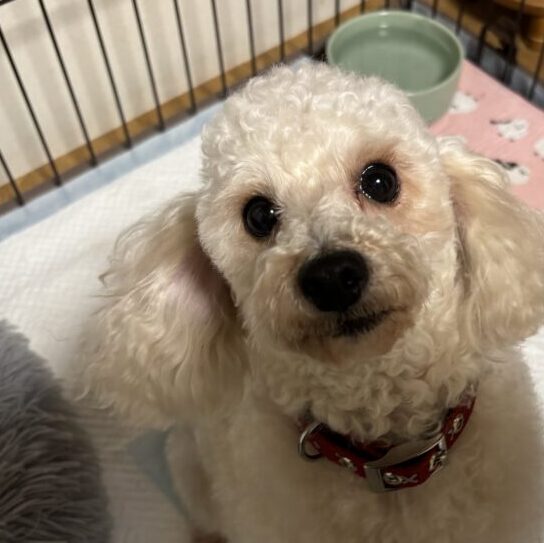 毛が伸びてくればトリミング次第でとても可愛らしい白プーちゃんに変身します。