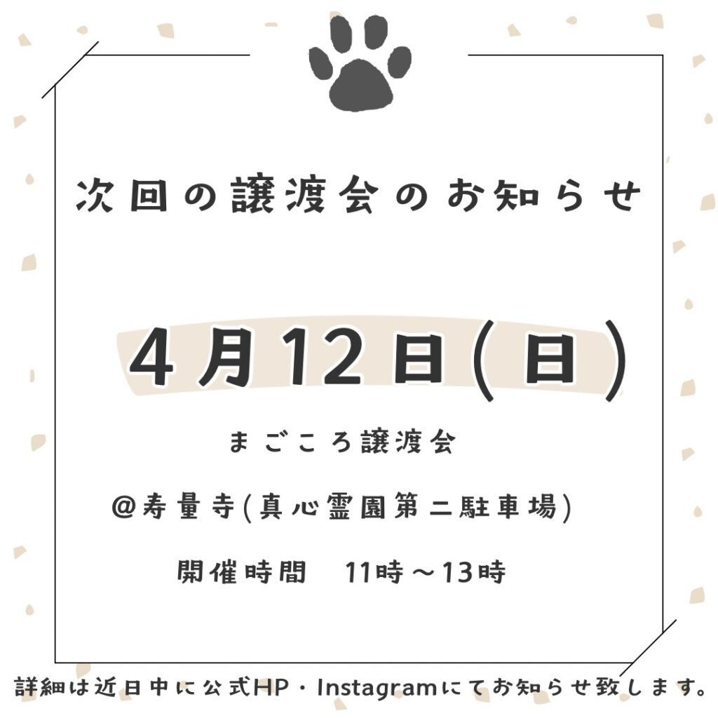 先日は譲渡会にお越しいただき、ありがとうございました。