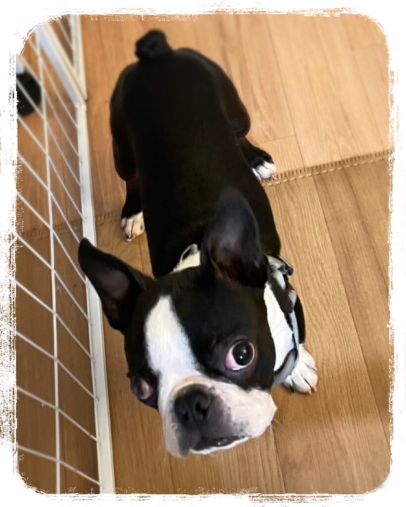 • お散歩: 練習を始めたばかりですが、人の後ろを忍者のように寄り添って歩く健気な姿に癒やされます。