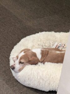 お散歩もいっぱいしてもらって、美味しいご飯も作ってもらって、ふっくらベットで寝ているチェリーちゃん…すっかり箱入娘です。