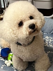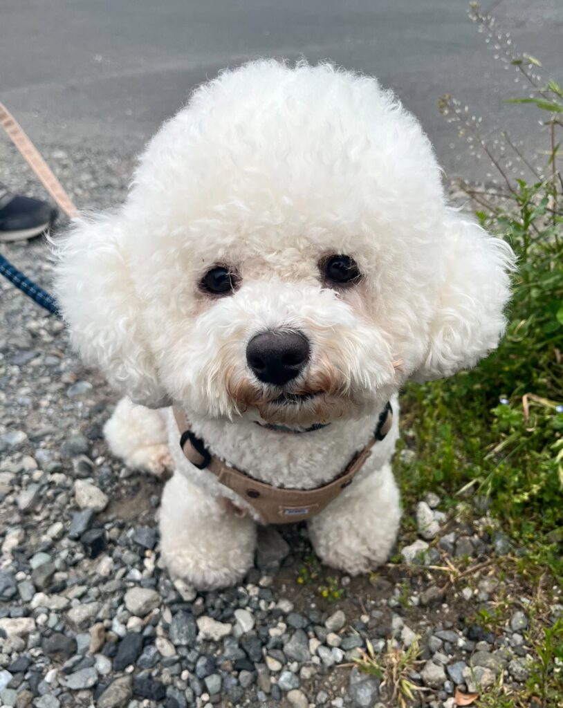 トイレシートは練習中で、お散歩は少しずつ歩けるようになってきました。