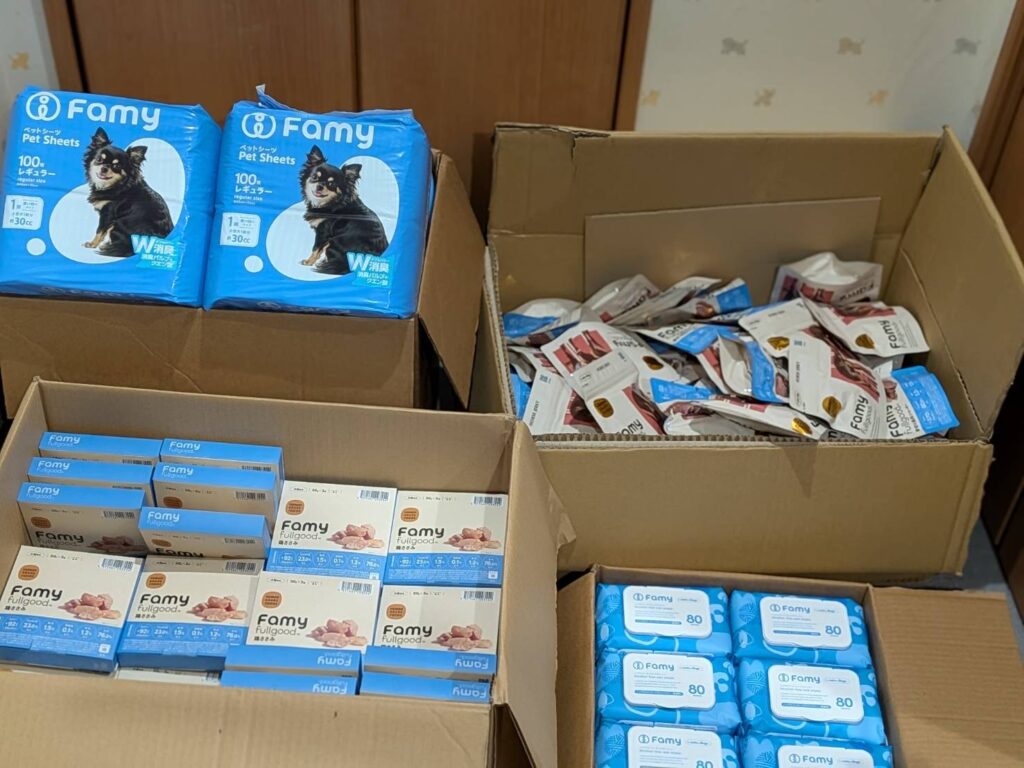 ペット総合ブランド「Famy(ファミー)」を展開するフォルダ株式会社様よりご寄付を頂きました。 保護犬の為に大切に使わせていただきます。 ありがとうございました。 -