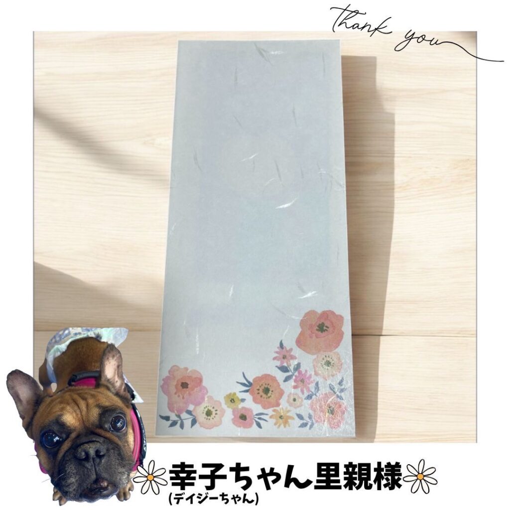 幸子ちゃんの里親様より募金をいただきました。 ご支援、誠にありがとうございます。大切に使用させていただきます。 -